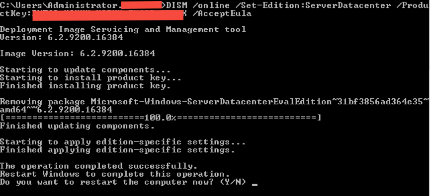 Hi Andy, Did you make sure your command-line is right? I guess your input arguments may have some thing wrong. Please try those steps: Cause: Whilst this is not obvious, this is caused by having the wrong product key. In my case I had installed Windows 2012 server and had not yet entered a product key. On the Windows Activation screen it showed: Windows isn't activated Current edition Windows Server 2012 Standard Current product key ****-92BT4 Why a meaningful error couldn't be displayed or the option provided to change the product key, I don't know.